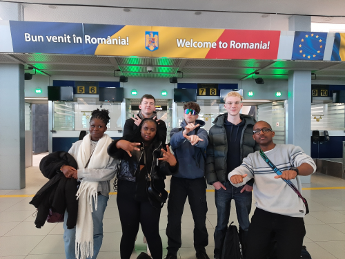 Nous sommes allés dans un lycée avec Louis, Nathan et Titouan pour échanger et socialiser avec des Roumains qui apprennent le français.