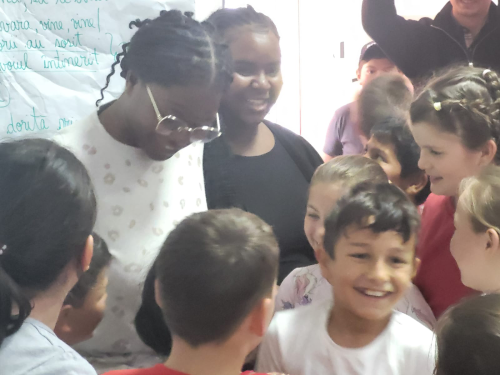 Avec les élèves de CE2, Diarra et Gisèle ont fait des activités interactives, pour leur apprendre les chiffres et les noms de quelques animaux en français, à partir de chansons. Les enfants y ont adhéré de suite et bien aimé.