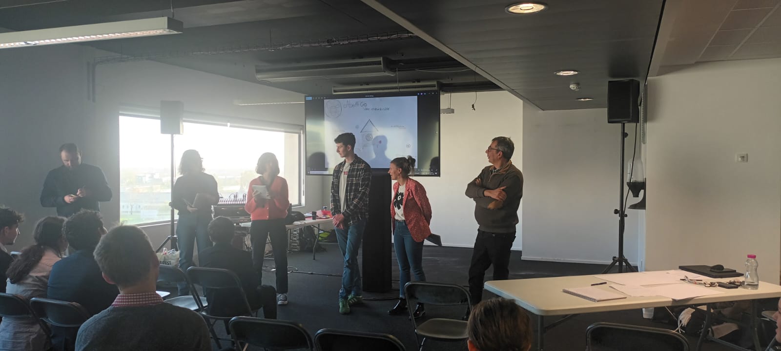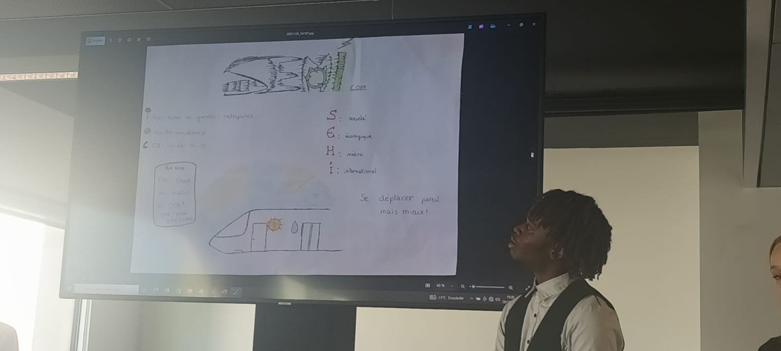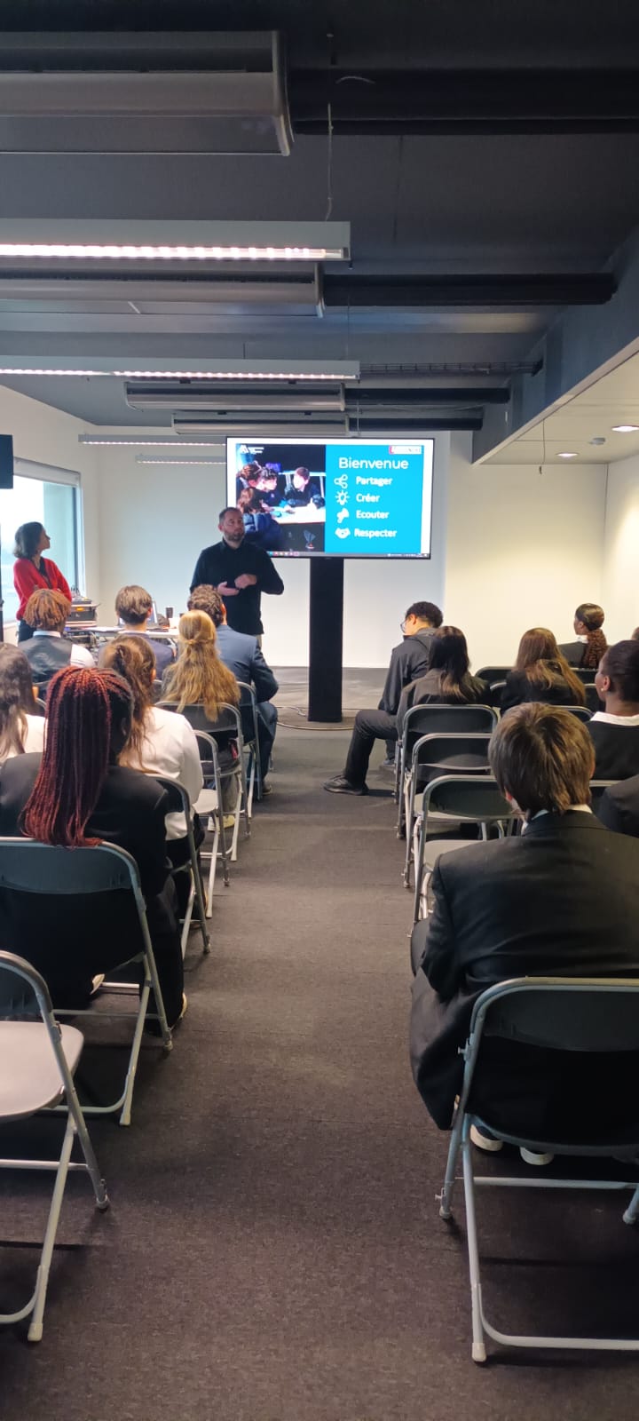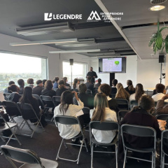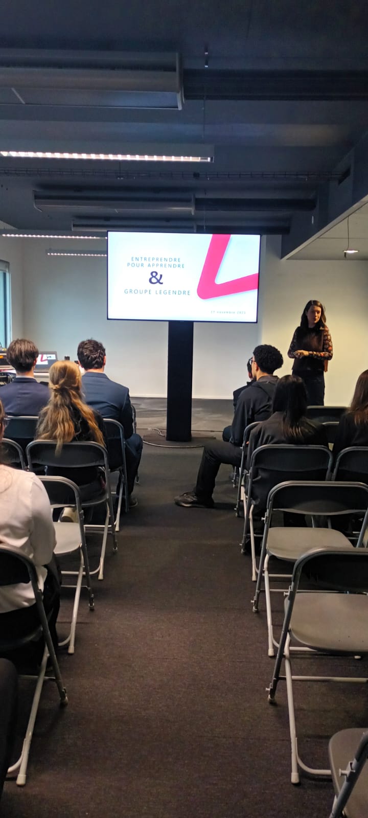 En fin de journée, chaque groupe a présenté son projet devant un jury composé de collaborateurs du Groupe Legendre, ainsi que devant l’ensemble des élèves participants. Cette restitution a permis aux lycéens de s’exercer à la prise de parole et à la présentation structurée d’un projet collectif.